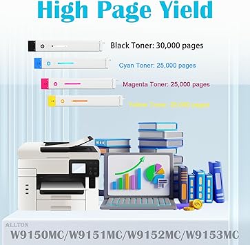 W9150MC Toner Cartridge 4PK W9150MC W9151MC W9152MC W9153MC Toner Cartridge Compatible for for Color Managed MFP E78625dn E78630dn E78635dn Printers(4-Pack)