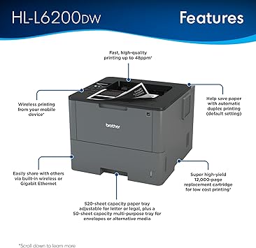 Brother HL-L6200DW Wireless Monochrome Laser Printer with Duplex Printing (Amazon Dash Replenishment Ready)